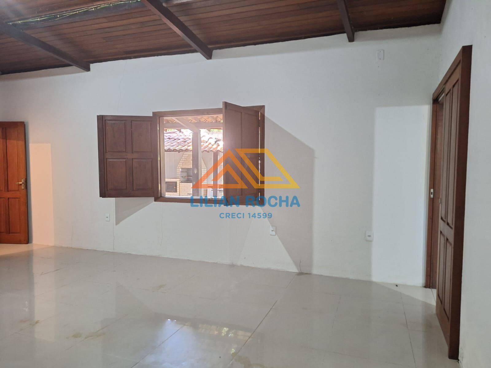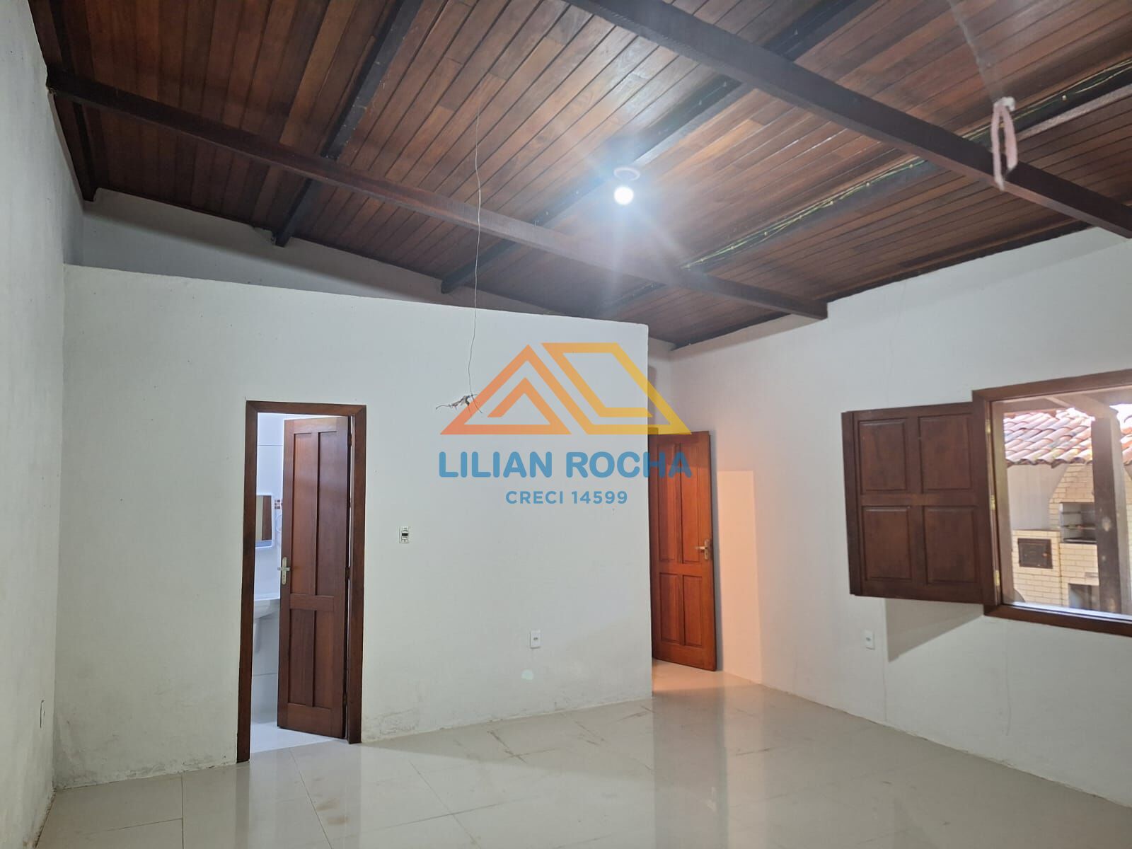 - Casa com pé direito alto e estrutura em madeira, trazendo charme e ventilação natural